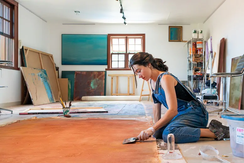Toda a trajetória artística de Ana Elisa Murta é permeada não apenas por práticas sustentáveis, como de responsabilidade social. “A extração dos pigmentos, que resultam em um produto livre de toxicidades, é feita por moradores locais, fomentando a geração de renda. Sempre tive uma preocupação com a origem e pureza das tintas e seu descarte. Utilizo ainda outros elementos encontrados na natureza. Ao escolher materiais sustentáveis e adotar práticas responsáveis, busco honrar a natureza e manter o ciclo da vida e da arte em equilíbrio”, descreve.