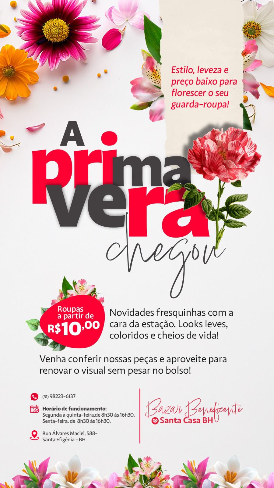 O Bazar Beneficente da Santa Casa BH convida você a conhecer a coleção especial de primavera para quem quiser montar looks leves, coloridos e cheios de vida, para combinar com a estação mais florida do ano. Com peças a partir de R$ 10, além de ter acesso a roupas de qualidade por um preço acessível, você contribui com a manutenção do maior hospital do país em número de internações pelo SUS.