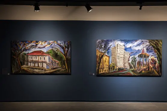 Entre as obras que integram a exposição estão: a Praça da Liberdade e os prédios históricos ao seu entorno; estandartes que retratam, por exemplo, a banda mineira Pato Fu, o Grupo Galpão e o Grupo Corpo – representando sua conexão com a música, o teatro e a dança; e os símbolos da cidade, como o Viaduto Santa Tereza, a Praça da Estação e a Avenida Afonso Pena. Outro destaque é a obra “Paixão segundo São João”, pintada ao vivo durante a execução da obra de Bach por uma orquestra mineira, e que poderá ser apreciada em seu verso, por trazer recados afetuosos e dedicatórias. A Casa Fiat de Cultura também foi retratada pelo artista, um presente pelos 19 anos da instituição, que serão celebrados em fevereiro de 2025.