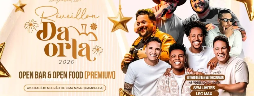 Um dos locais mais procurados para receber o ano novo em BH é a Lagoa da Pampulha. E o Bar da Orla promove o já tradicional Réveillon da Orla. Será uma noite de celebração, música e muita energia positiva para dar as boas-vindas a 2026 em grande estilo. O evento propõe uma festa premium com 100% open bar e open food, além de espaço kids, garantindo conforto e diversão para toda a família. Estrutura impecável, ambientação temática e show de fogos para celebrar o novo ano com muita emoção.