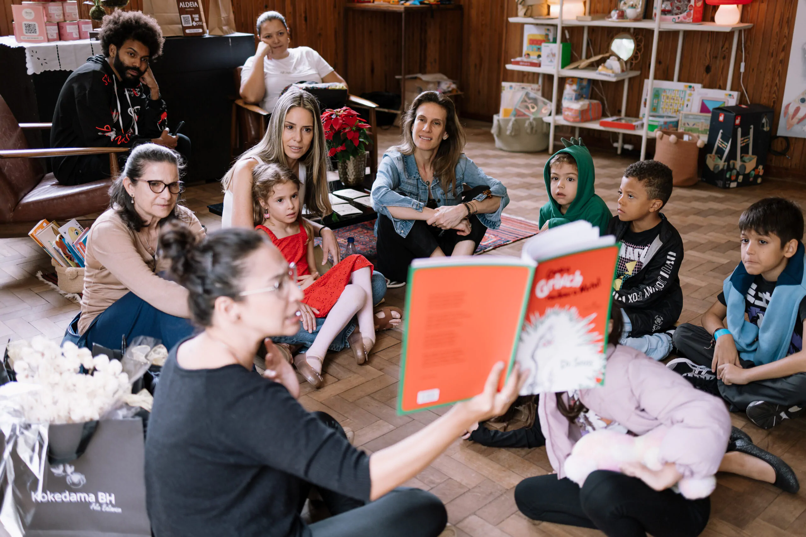 Uma sessão interativa onde as crianças ouvem uma história natalina enquanto constroem cenários e personagens com peças de Lego, tornando a narrativa ainda mais envolvente.