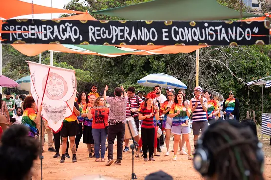 Em fotografias de 30 anos atrás é possível ver pessoas felizes brincando e nadando nas águas do Ribeirão do Onça, rio que nasce em Contagem, atravessa Belo Horizonte e deságua no Rio das Velhas na divisa de Santa Luzia, região metropolitana. Movidos pelo sonho de voltar a nadar, pescar e brincar no Onça – realidade já é possível no Rio Sena, em Paris, França, que, após 100 anos foi despoluído -, o festival, em parceria com a comunidade e movimentos, luta por qualidade de vida, pela valorização do rio e do meio ambiente. Letícia Ribeiro, coordenadora de mobilização e articulação do projeto, explica que em 2024, na primeira edição do Festival da Onça, “o local recebeu as primeiras intervenções e ganhou um mirante e um escorregador. Neste ano, o objetivo é dar continuidade às ações no território para a construção coletiva do Parque Ciliar Comunitário do Ribeirão Onça, um corredor verde com quase seis quilômetros de extensão em leito natural com áreas de lazer, cultura e convivência.”