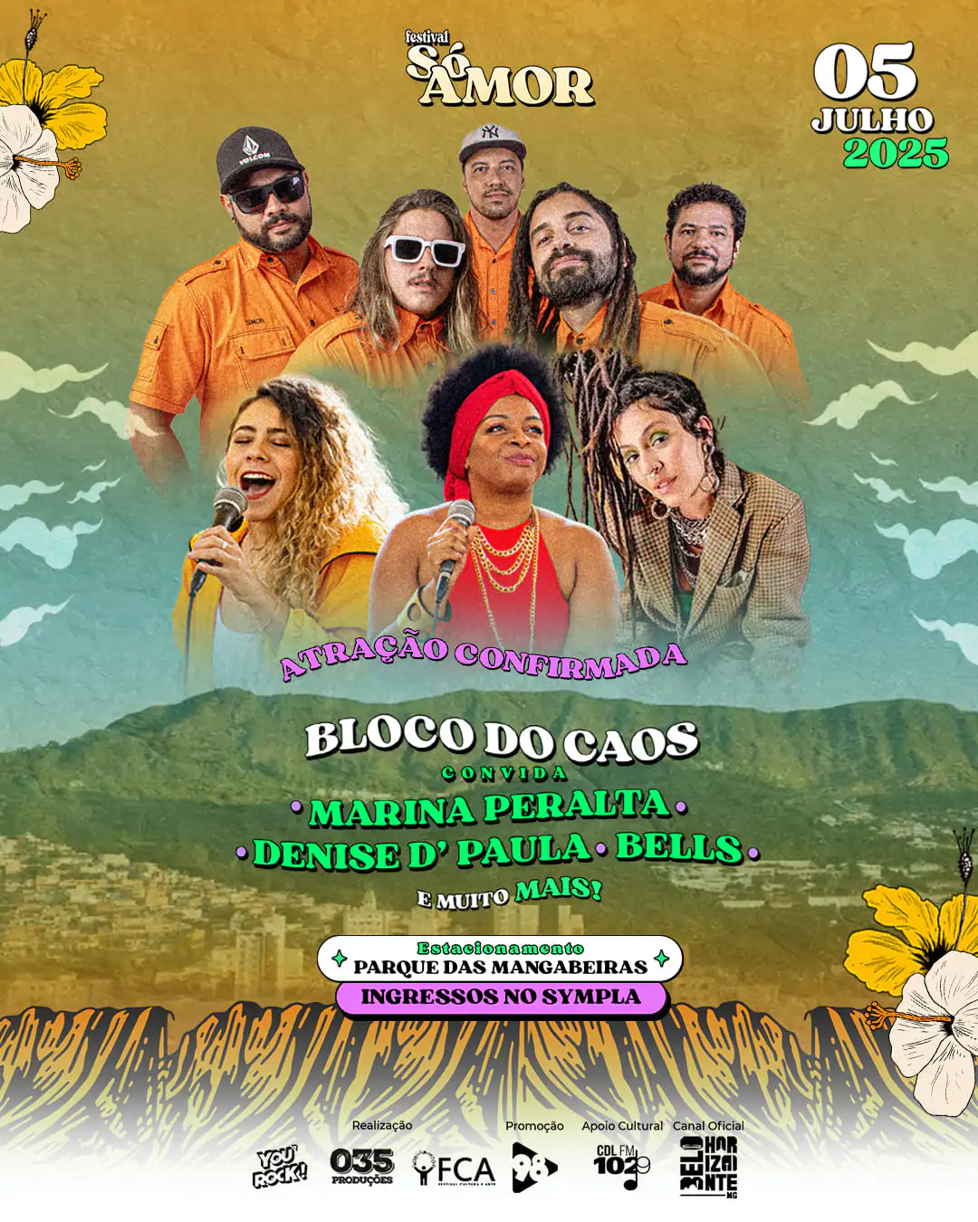 O Festival Só Amor está de volta a Belo Horizonte para sua segunda edição, no dia 5 de julho, prometendo uma experiência vibrante de música, arte e conexão. A partir das 14h, o evento ocupa o Parque das Mangabeiras — um dos maiores cartões-postais da cidade — com programação musical de peso, espaços de experiência, gastronomia e uma vista espetacular da capital mineira. Entre os destaques do line-up estão Armandinho, Ponto de Equilíbrio, 3030, Bloco do Caos, Danilo Lana e os DJs DeSkaReggae, reforçando a proposta do festival de celebrar a diversidade cultural, o encontro com a natureza e as boas energias.