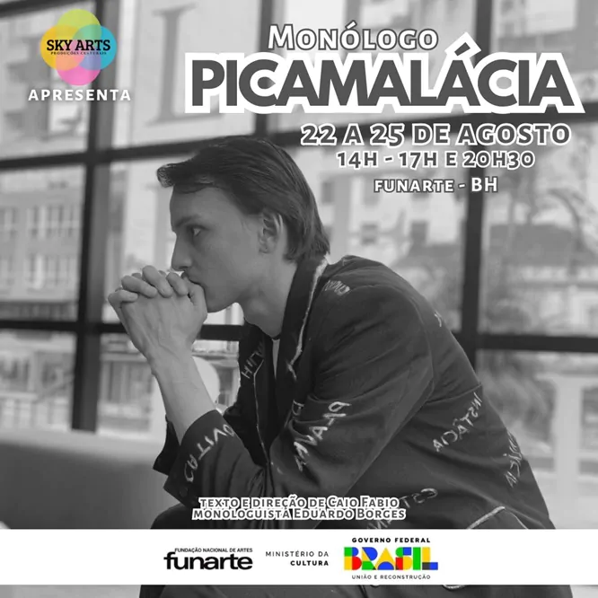 - Sinopse: “Picamalácia” é um monólogo interativo que explora a língua portuguesa através de curiosidades etimológicas, ditados populares e fobias desconhecidas. Dirigida e escrita por Caio Fábio, a peça é estrelada por Eduardo Borges, que conduz o público por uma viagem fascinante e educativa, desvendando segredos da nossa linguagem e cultura.