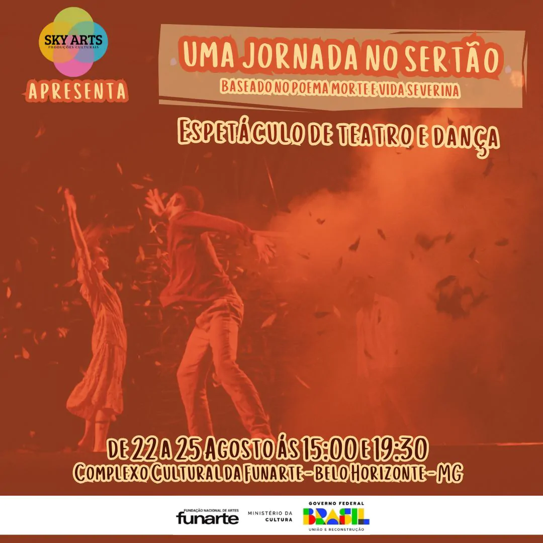 - Sinopse: Inspirado em “Morte e Vida Severina” de João Cabral de Melo Neto, “Uma Jornada no Sertão” é uma emocionante fusão de teatro, música e dança. O espetáculo narra as dificuldades e esperanças do sertanejo, destacando a força da resiliência humana. A direção e coreografia são de Caio Fabio, com codireção de Eduardo Borges, e o elenco é composto por 16 talentosos artistas.