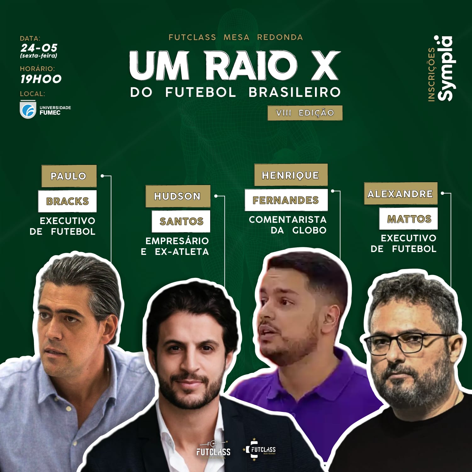 No dia 24 de Maio, a partir das 19 horas, Belo Horizonte sediará um dos principais eventos acadêmicos no futebol. A 8° edição do Futclass- Academia do Futebol acontecerá no Teatro Phoenix da Universidade Fumec, com o tema “Um Raio X do Futebol Brasileiro”. Alexandre Mattos (CEO do Cruzeiro Esporte Clube), Hudson Santos (Empresário e ex-atleta), Henrique Fernandes (comentarista da Globo), Paulo Bracks (Executivo de Futebol) e outros players que compõem a indústria do futebol estarão presentes na 8ª edição do evento.