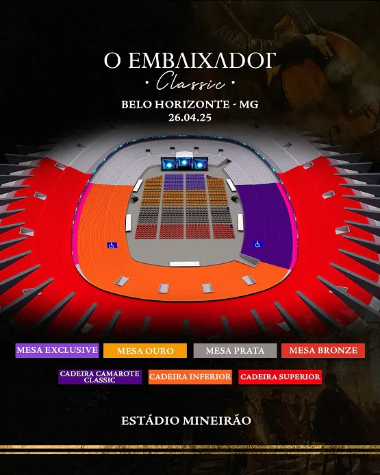 A nova turnê “O EMBAIXADOR CLASSIC” chega à capital mineira no dia 26 de abril de 2025, no Mineirão.