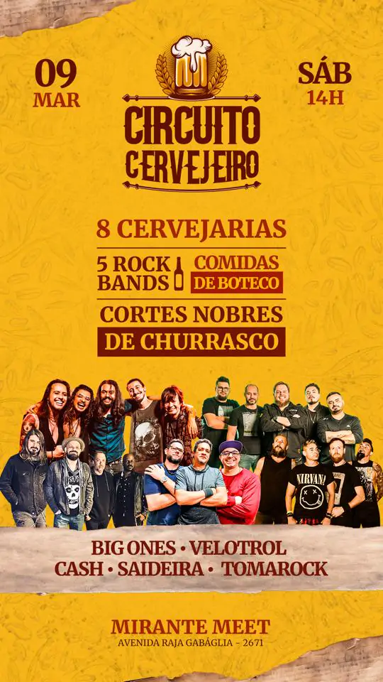 O Circuito Cervejeiro estreia no Mirante Meet, no estacionamento da churrascaria Porcão, no próximo dia 9 de março, sábado. A proposta é reunir as melhores cervejarias de Minas Gerais, gastronomia que mescla duas paixões de BH, churrasco e comida de boteco, com o melhor do Rock no palco da festa. O evento terá lotes de entrada gratuita distribuídos mediante retirada no Sympla. Entre as cervejarias convidadas, estão marcas premiadas internacionalmente como o Albanos, a pioneira Krug e a Läut também estarão presentes. Tem ainda a Verace, Cervejaria 040 e a Slod. Pra fechar, tem a Loba, de Santana dos Montes, e a Götter, que vão levar ao tapping da festa, os melhores rótulos.