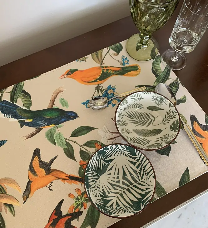 Essa busca por autenticidade não se limita à moda, mas também se estende ao mercado de mesa posta, onde a sustentabilidade ganha cada vez mais destaque. Liliane Tanure, da marca Lili Veste a Mesa, observa que materiais como bambu, rattan, cerâmica e linho estarão em alta em 2025, trazendo texturas diferenciadas às peças de decoração. As estampas inspiradas na natureza, como folhagens, frutas e flores, também estarão em evidência, acompanhadas de cores vibrantes, como laranja, verde e vermelho, que prometem dar vida aos ambientes.