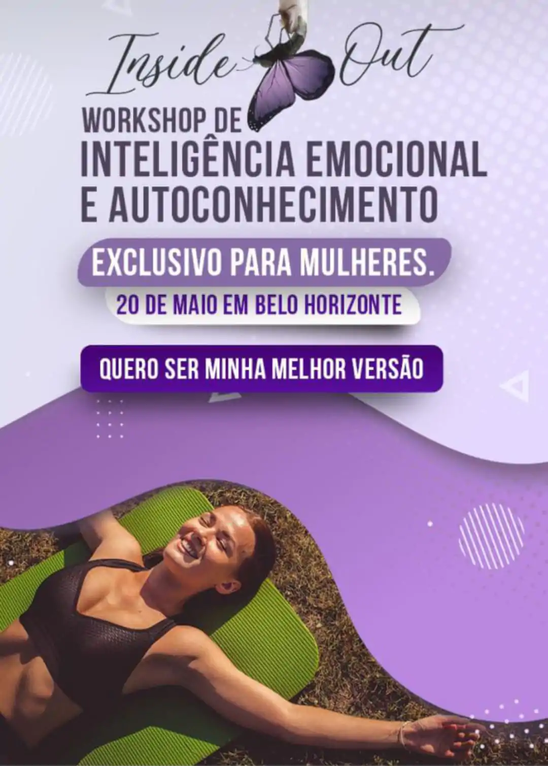 O Inside Out é um Workshop de Inteligência Emocional e Autoconhecimento, voltado exclusivamente para mulheres, que busca promover o desenvolvimento pessoal e a buscam pela melhor versão de si mesmas.