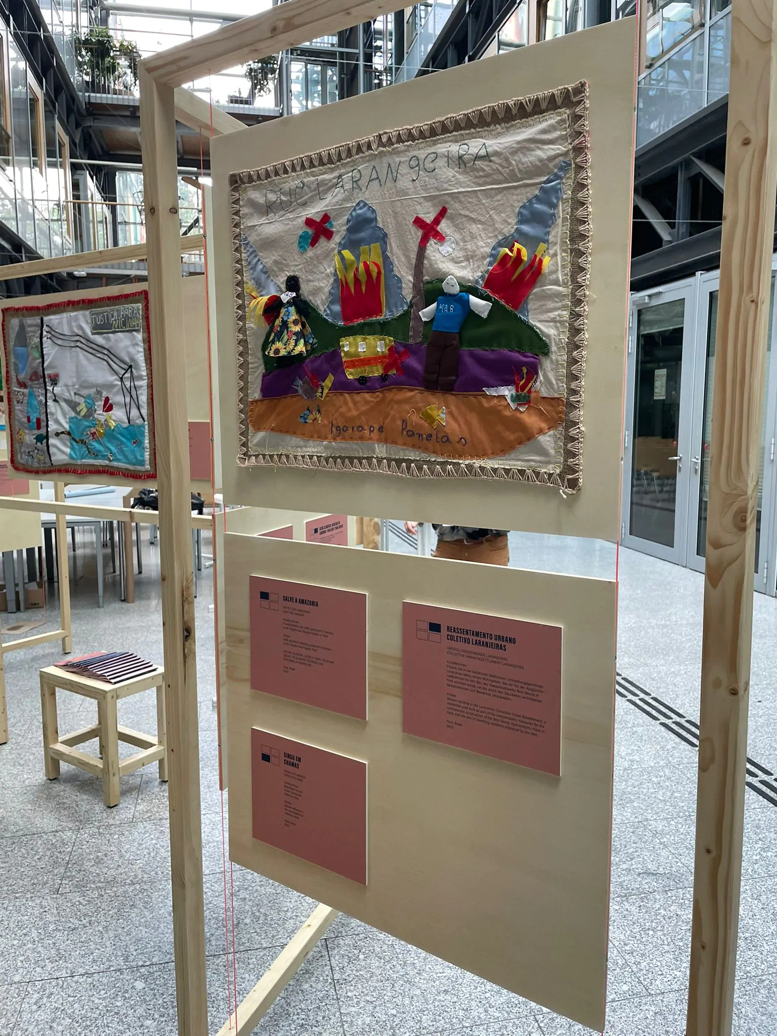 As histórias tecidas pelas suas mãos ganharam, a partir desta quarta-feira (1º), um espaço privilegiado para serem ouvidas na Universidade de Recursos Naturais e Ciências da Vida de Viena – Universität für Bodenkultur Wien. A exposição apresenta 15 arpilleras brasileiras que registram a dor, a resistência e a esperança das mulheres atingidas por barragens e pelas consequências da mudança climática, organizadas no Movimento dos Atingidos por Barragens (MAB).