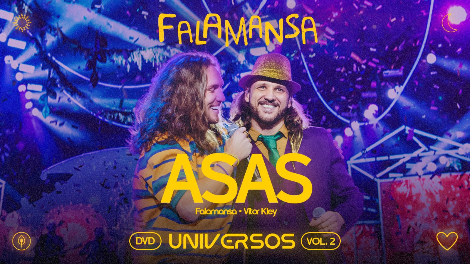 O DVD “Universos” foi gravado ao vivo em Belo Horizonte, com os clássicos da Falamansa e novas canções interpretadas pela banda e convidados especiais, totalizando 22 canções. Agora com o lançamento de “Asas”, o volume 1 está completo, já foram lançados os singles “Oh Chuva” com feat de Marcelo Falcão, “Um dia perfeito”, “Aloha / Segue a Vida”, “Xote da Alegria”, “Me ama” com feat de Maneva e “Cem anos”. “Asas” faz parte do volume 2 deste trabalho. Assista: