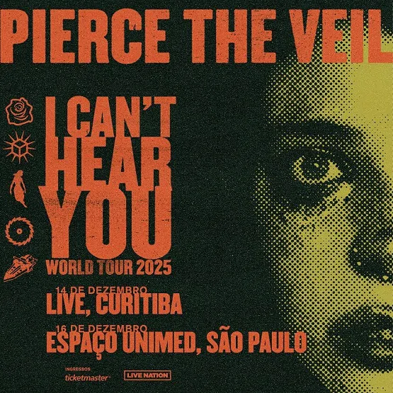 Em 2025, o Pierce The Veil assumirá o centro do palco com sua aguardada turnê global “I Can’t Hear You Tour” – cobrindo 46 datas na América do Norte, Europa e América Latina, marcando um novo e ousado marco para a banda. Produzida pela Live Nation, a turnê será a maior da banda como atração principal e incluirá apresentações em locais icônicos como o Madison Square Garden, em Nova York (NY); o Kia Forum, em Los Angeles (CA); a OVO Arena Wembley, em Londres (Inglaterra); e o Espaço Unimed, em São Paulo (Brasil).