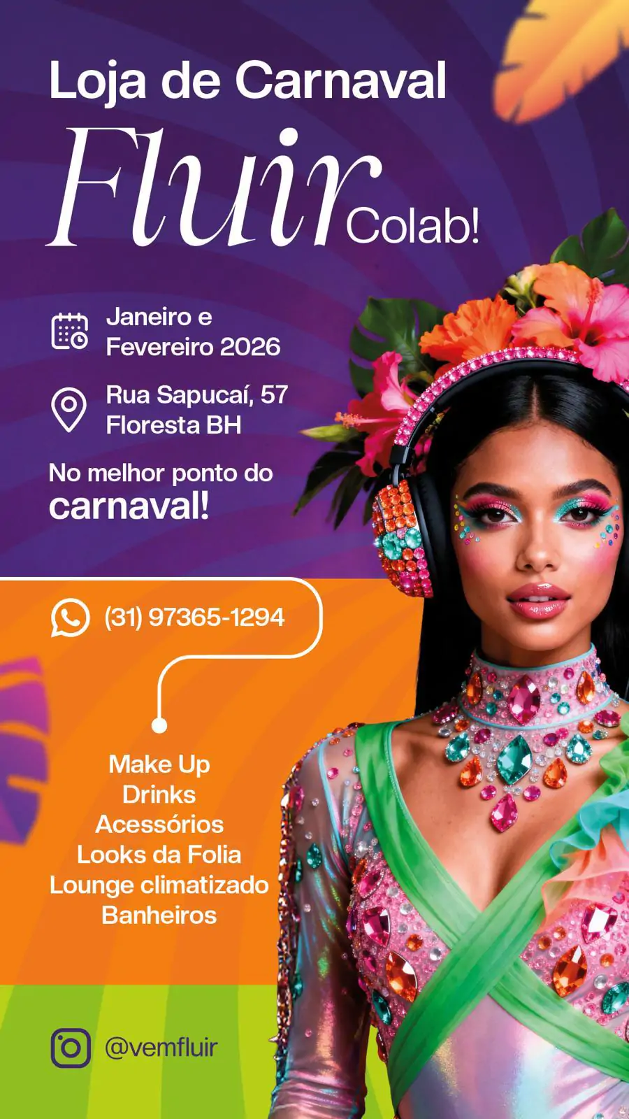 É nesse cenário que a Fluir Colab se consolida como um dos principais pontos de encontro do Carnaval de BH. Localizada na Rua Sapucaí, 57, no bairro Floresta, a loja e espaço colaborativo reúne moda autoral, decoração, artesanato e oficinas em um ambiente pensado para acolher foliões, artistas, moradores e visitantes.