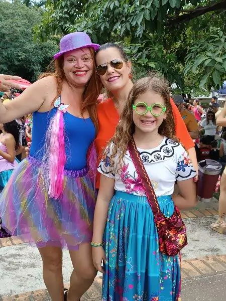 Para a carioca Ana Flávia Santos, o Carnaval é uma festa para toda a família. Fantasiada de princesa, ela se divertia com o esposo, a filha, genro e netos. “Nossos filhos foram criados no Carnaval, indo para as praias, para mela-mela, vieram aqui. É um momento de descontração, que aproxima a família”, ressalta. Ana acredita que as fantasias são importantes porque “botam o Carnaval pra frente” e representam as coisas nas quais as pessoas acreditam.