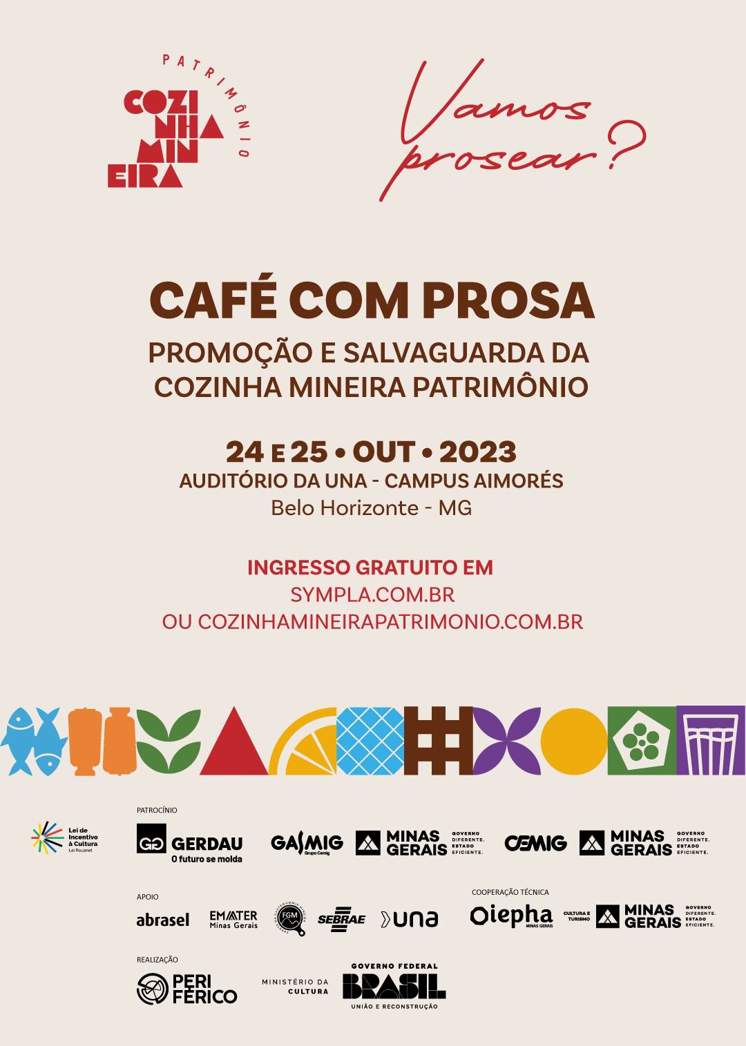 A programação completa e a retirada gratuita do ingresso estão disponíveis no sympla.com.br/evento/cafe-com-prosa-promocao-e-salvaguarda-da-cozinha-mineira/2166743 O campus da Una Aimorés está localizado na rua Aimorés, 1451, bairro Lourdes. O credenciamento inicia às 8h30 e na quarta haverá aula-show com degustação com o tema “Cozinha mineira – da tradição à inovação”, com a professora de Gastronomia da Una, Rosilene Campolina.