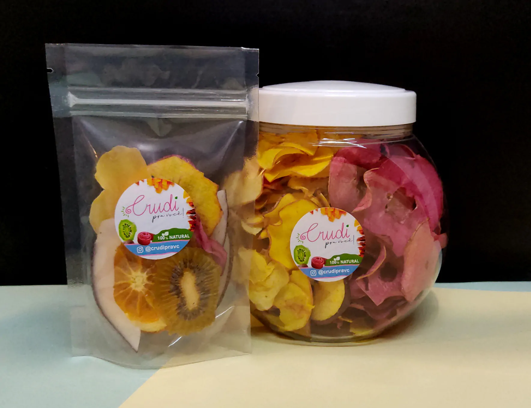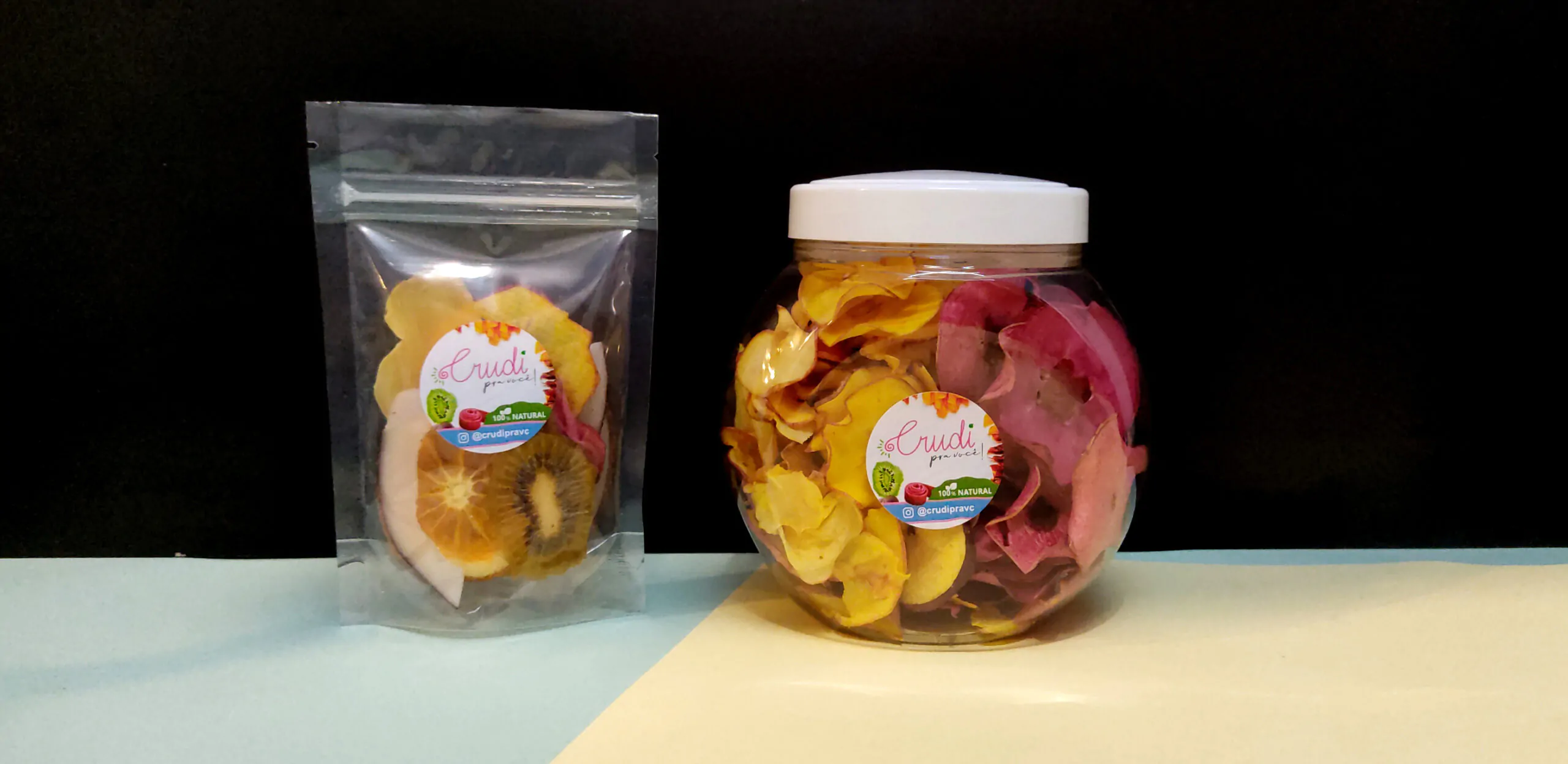 Os produtos são comercializados pelo Instagram e WhatsApp e há diversasopções:Snacks de maçãs coloridas em potes de 50g.; Kit de mix de frutas desidratadas em pote de 65g.; Embalagemde mix de frutas de 25g.e pacote de 25g.,comespeciarias e frutas desidratadas para drinks.Os produtos são perfeitos para presentear e surpreender alguém especial, e o melhor de tudo, as vendas são feitas sob encomenda para garantir frutas frescas e sequinhas.
