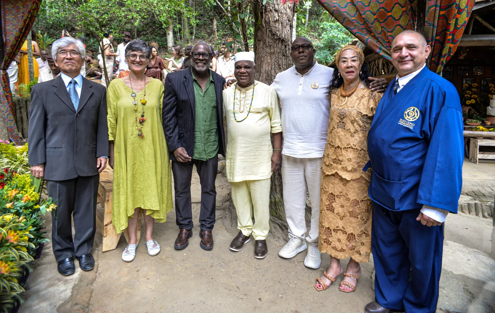 Bênção inter-religiosa – Após o rito de Ifá, a celebração ganhou ainda mais significado com uma bênção inter-religiosa, reunindo diferentes expressões de fé em um gesto único de unidade: O Arcebispo Kyohaku Correia (Budismo Primordial/SP) destacou a sacralidade do encontro entre dois elos e lembrou que o elo da primavera, divino e além das forças humanas, é quem abençoa verdadeiramente o matrimônio. Citou ainda um provérbio ancestral: “Se quiser ser feliz não case! Só case se quiser fazer o outro feliz”, encerrando com o mantra sagrado Namumyouhourenguekyou.
