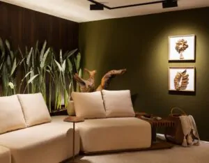 Inspirada na ancestralidade, sua paleta de tons terrosos e verdes conecta-se à força da natureza, enquanto sementes secas e flores do cerrado evocam memória, pertencimento e identidade brasileira. O design autoral, aliado à iluminação intimista, reforça a atmosfera acolhedora e sofisticada.