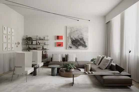 O Living Raízes, de Manuela Senna se destaca como uma sala-bar inspirada na arte de receber. A composição valoriza formas orgânicas e texturas que evocam memória e pertencimento. Os tons terrosos criam uma atmosfera serena e sensorial, com foco no bem-estar.