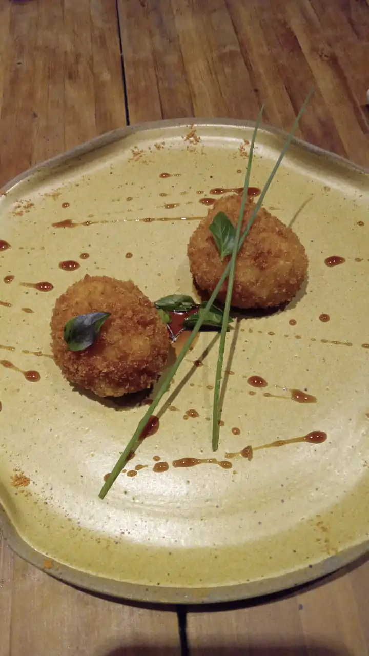 Entrada: Mineirinho Amadís (pão de queijo frito recheado de pernil, requeijão e pimenta biquinho acompanhado de molho framboesa levemente picante). Ou Dadinho de ragu de costela acompanhado de maionese de pimenta dedo de moça.