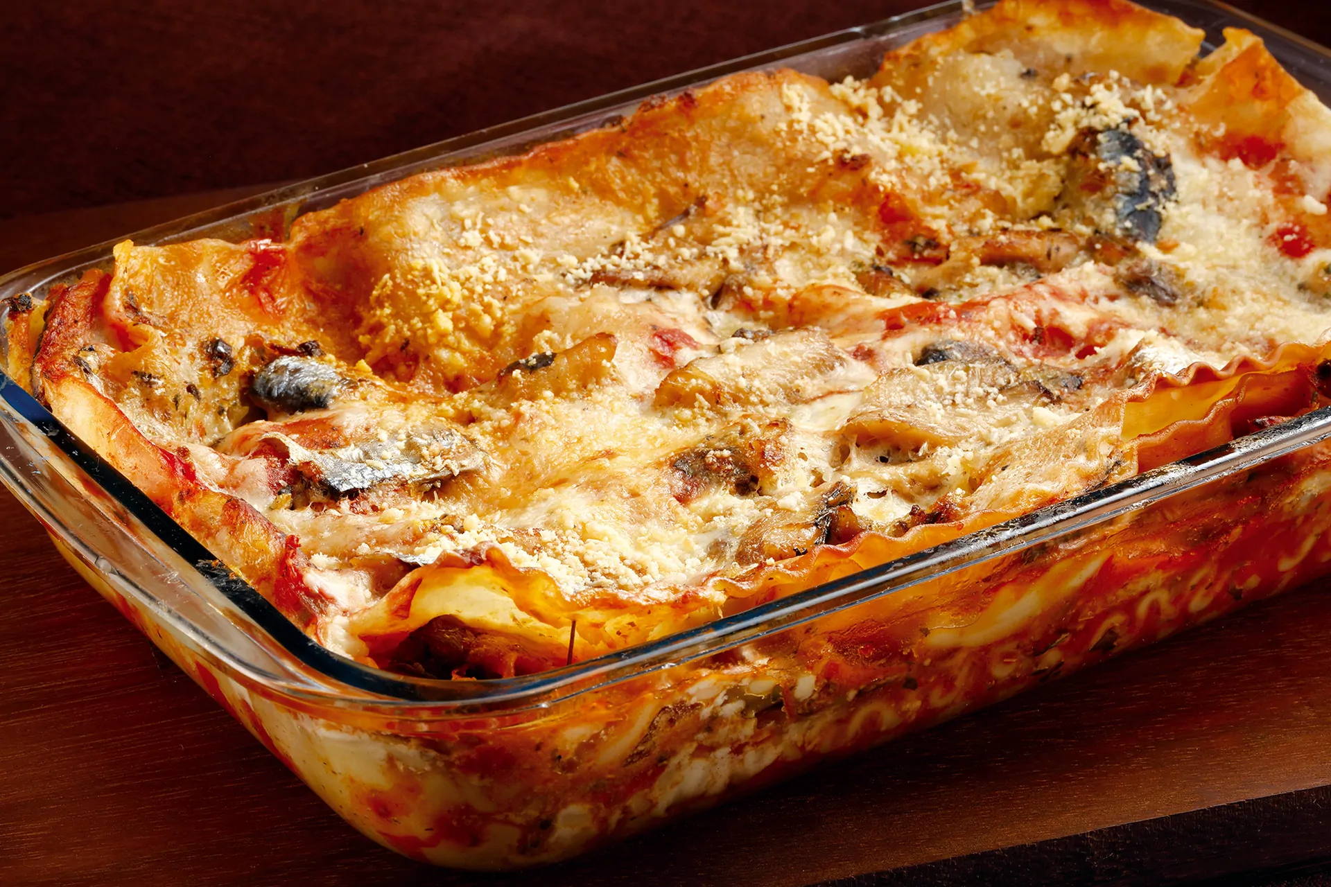 Monte a lasanha: cubra o fundo de um refratário retangular médio (30x20cm) com uma camada fina de molho de tomate. Vá alternando camadas de massa (é importante deixar uma distância entre elas para que possam aumentar de tamanho durante o cozimento), molho branco, refogado de Sardinha e molho de tomate. Finalize com o molho branco. Distribua o queijo ralado por toda a superfície. Leve ao forno médio (180°C), pré-aquecido, coberto por papel alumínio e asse por 40 min ou até ferver. Retire o papel alumínio e asse por mais 10 min. Sirva em seguida