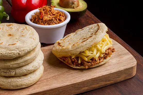 A Arepa, essencial na dieta diária, é um alimento feito à base de milho que carrega uma forte identidade nacional, e é disputada por Colômbia e Venezuela. Sua existência remonta a milênios, é um legado das civilizações pré-colombianas, para quem o milho era um cereal sagrado e fundamental. Equivalente ao “pão” cotidiano, sua versatilidade para ser consumida em qualquer hora do dia e com diversos recheios (queijo, carne, frango) a estabeleceu como um elemento democrático que une diferentes classes sociais e gerações.