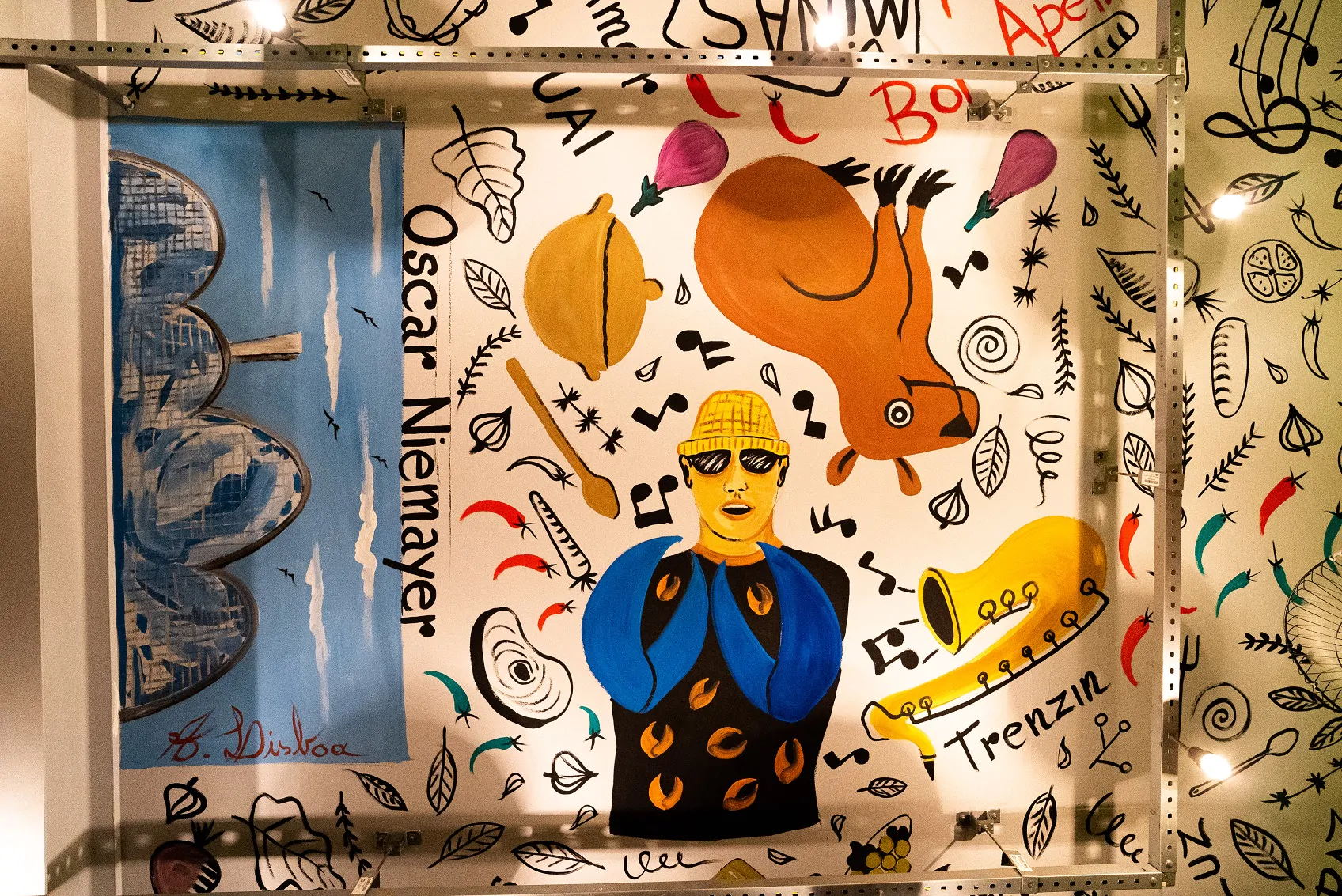“Estava de férias em Porto de Galinhas e fiquei apaixonado pelo trabalho dele. Comecei a procurar pelo autor das pinturas e descobri que se tratava de um senhor, sem celular, sem ter como encontrar. Até que descobriram o paradeiro dele e eu consegui fazer contato e trouxe ele para BH para que pintasse a casa nova. Acho que as pessoas vão gostar muito. São pinturas que trazem um pouco do cotidiano mineiro, um pedaço de queijo saindo do Mineirão”