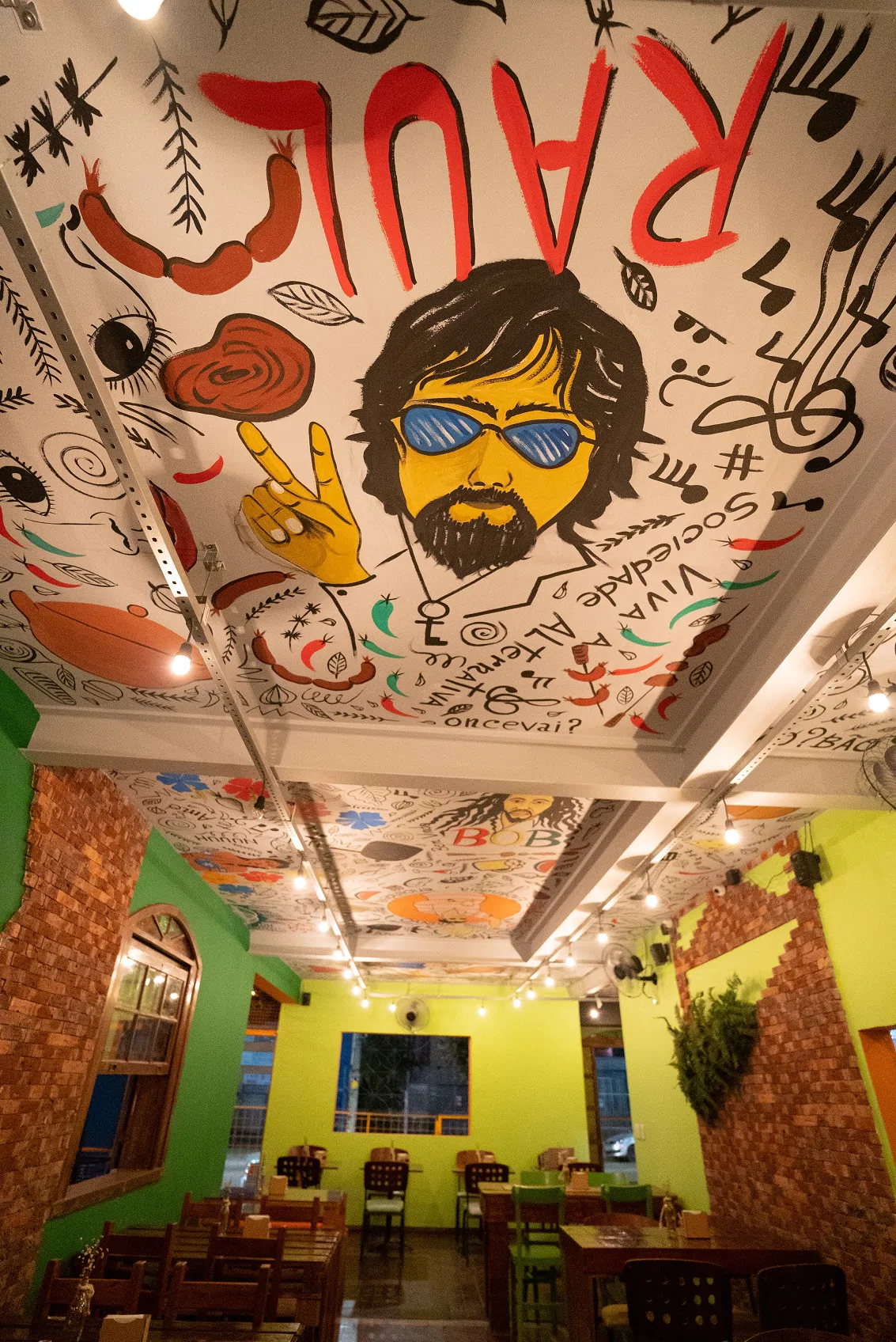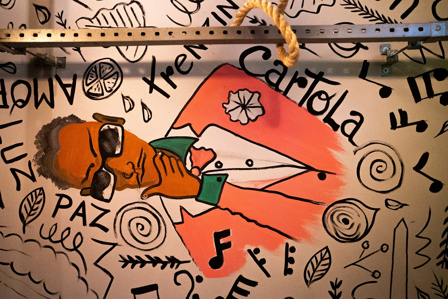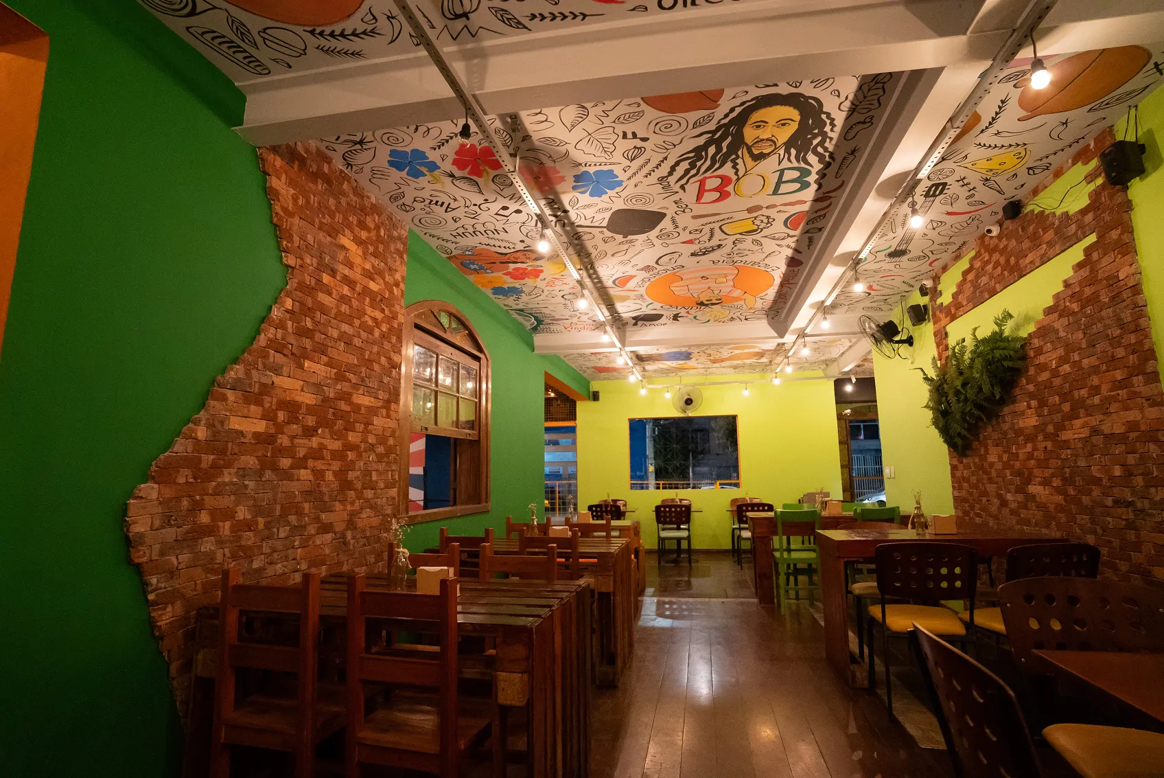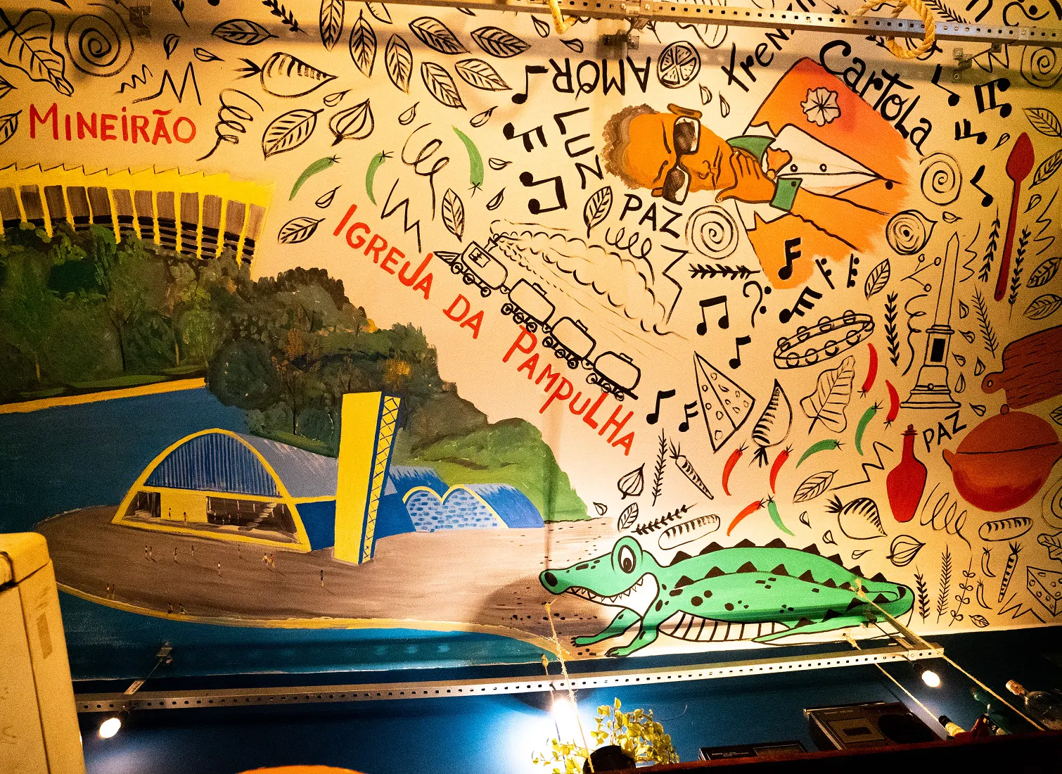 Com uma decoração bem legal, a pintura da casa que retrata não só pontos turísticos de BH, como a Igreja da Pampulha, o Mineirão, mas, de Minas também e alguns objetos de inspiração dele mesmo, além de uma do Zeca Pagodinho que retrata o nome do bar.