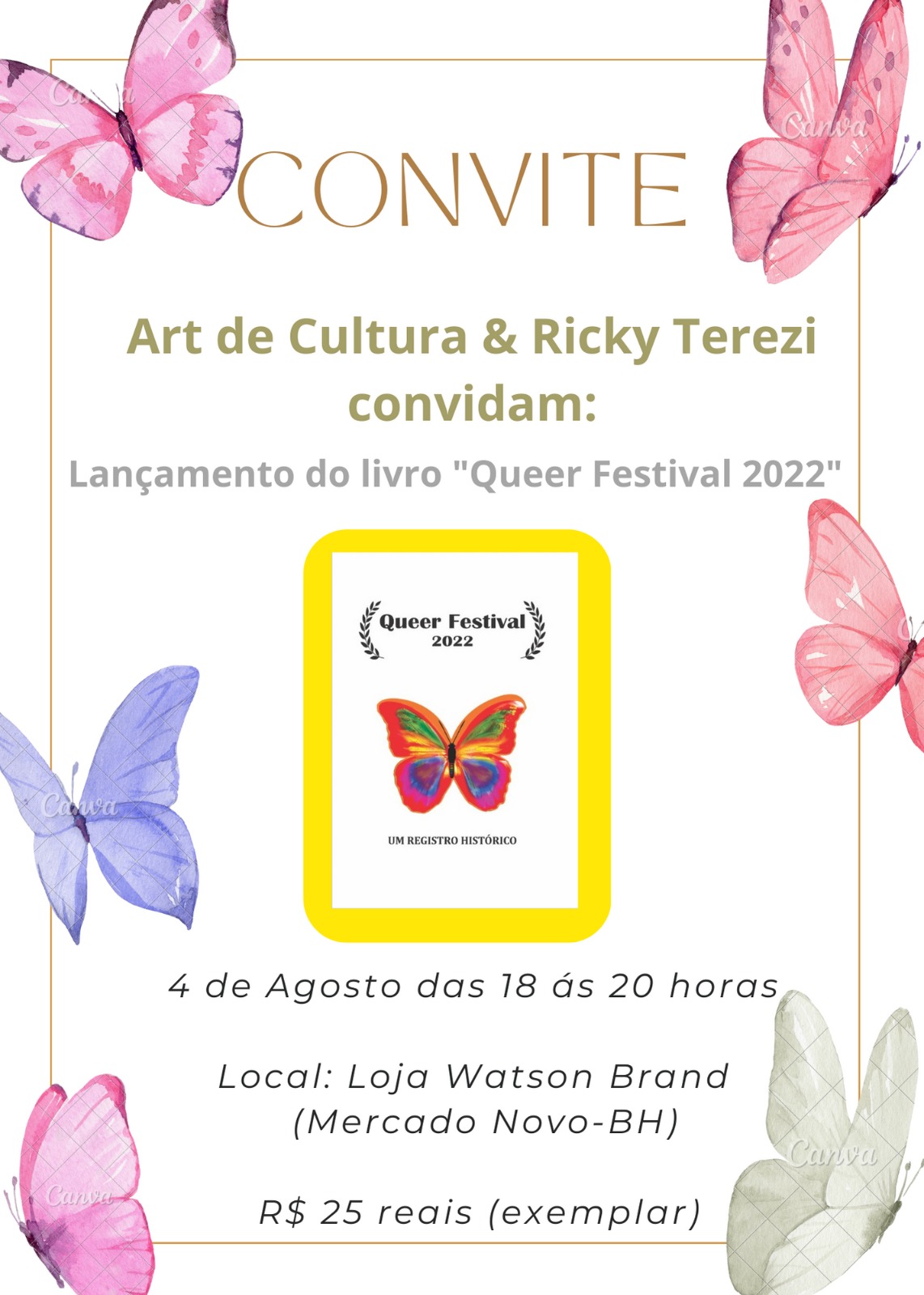 Foi lançado no último dia 4 de agosto no Mercado Novo em BH o livro, Queer Festival, que conta como foi a primeira edição deste festival e um pouco da história dos homenageados aos Prêmios Butterfly.
