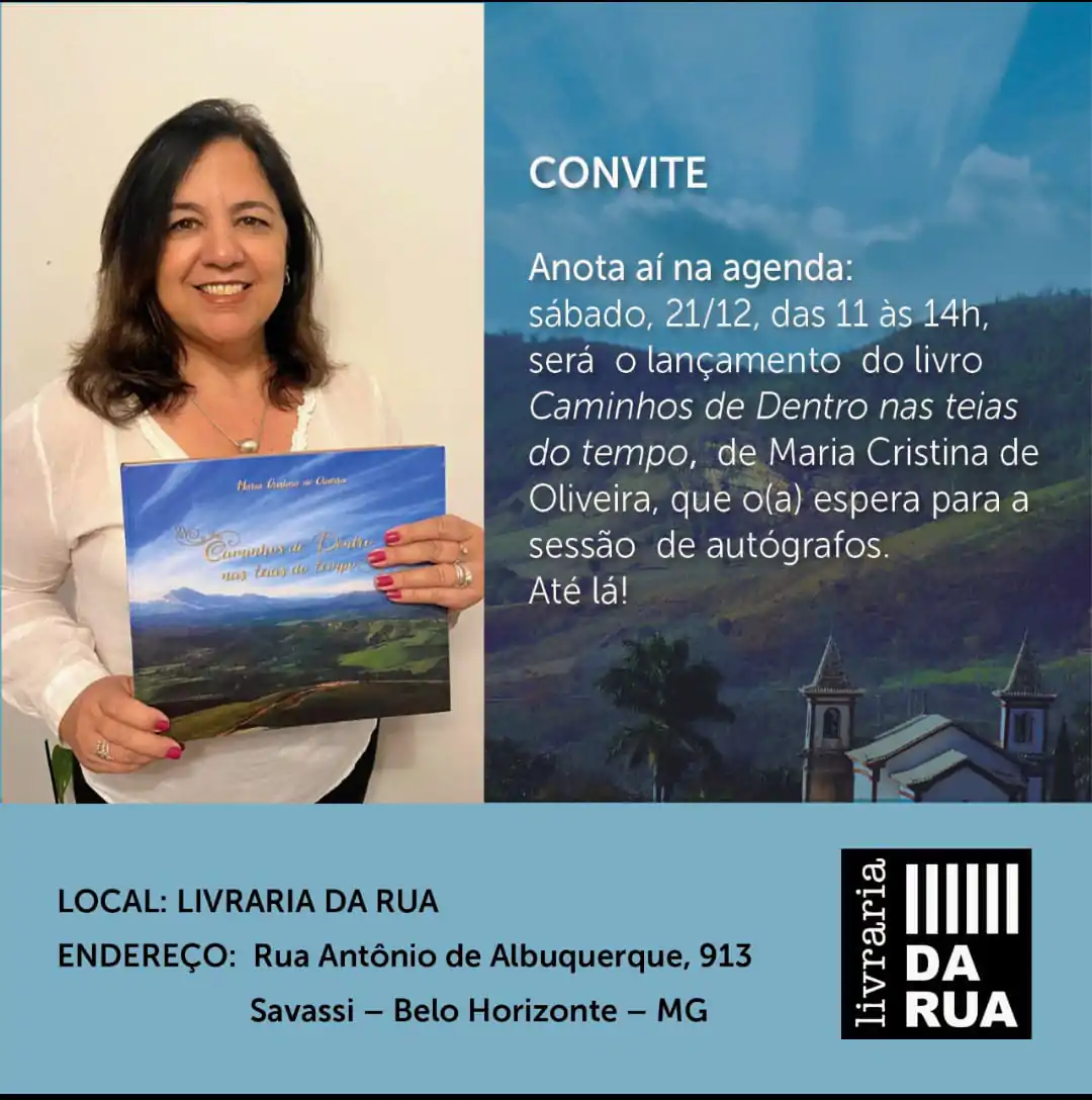 Lançamento do Livro “Caminhos de Dentro nas teias do tempo” – autora Maria Cristina de Oliveira