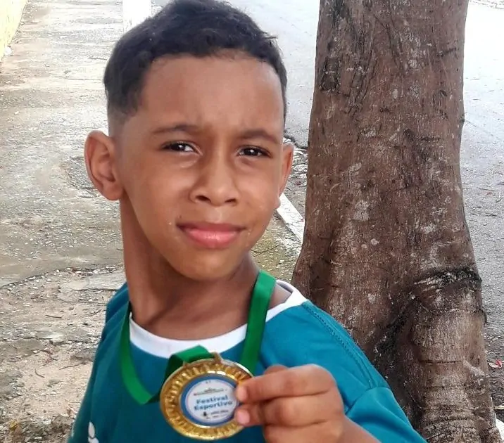Fotos: Matheus Welington Dutra Soares, de 8 anos, superou as limitações da lesão graças ao apoio do Programa Escola de Esportes (Divulgação/De Peito Aberto)