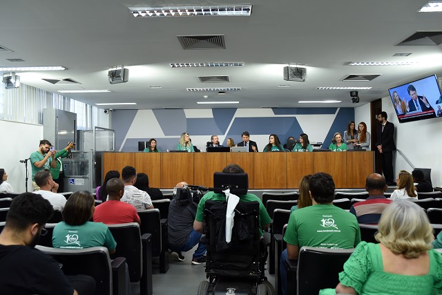 Ao fim da reunião, Zé Guilherme entregou votos de congratulações a integrantes da Associação Brasileira de Pacientes de Neuromielite Óptica e Doenças do seu Espectro (NMO Brasil), pelos 10 anos de sua fundação. Daniele Freire, presidente e cofundadora da NMO Brasil, agradeceu a homenagem, lembrando que também é uma forma de dar visibilidade à doença.