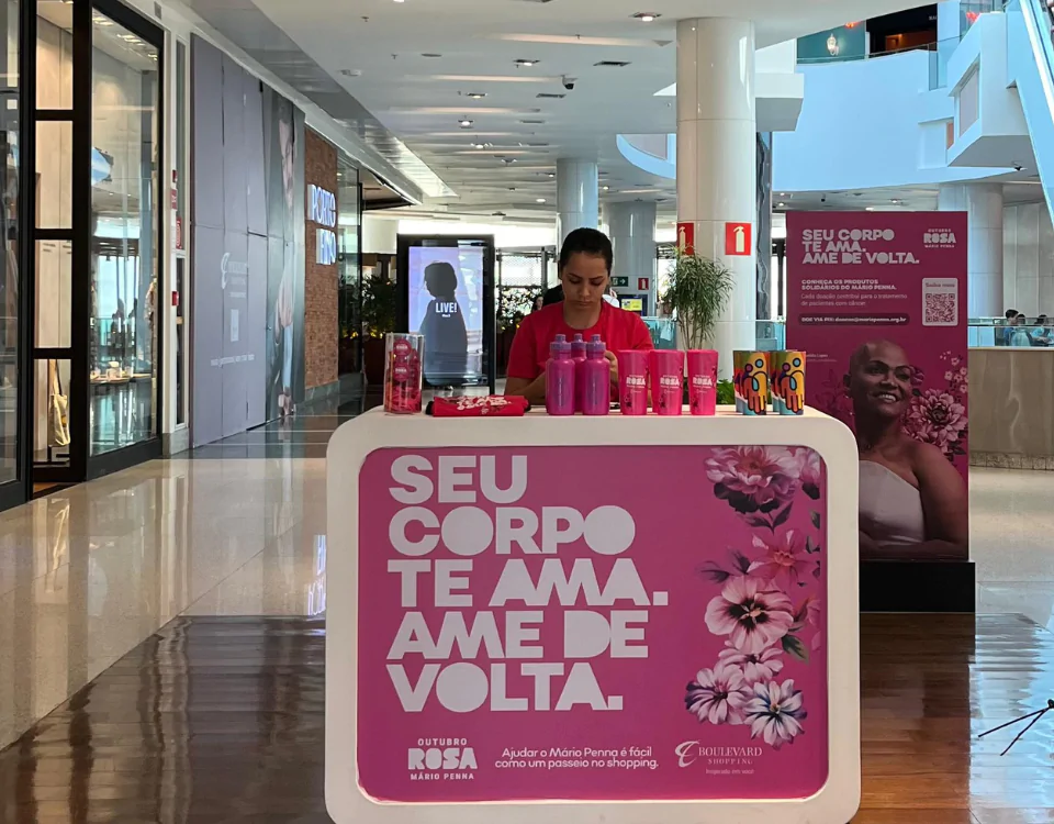 No mês de conscientização sobre o câncer de mama, o Boulevard Shopping BH recebe o Stand Mário Penna, em apoio à campanha Outubro Rosa. Até 15 de outubro, todo o valor arrecadado com a venda de produtos exclusivos no stand será destinado ao tratamento de pacientes oncológicos atendidos pelo instituto, com mais de 50 anos de atuação em Minas Gerais.