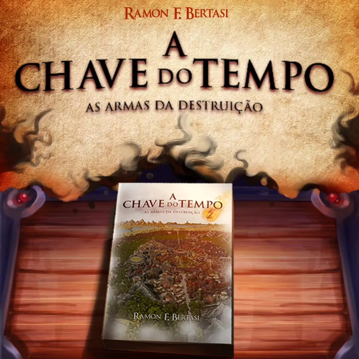 O primeiro livro: A Chave do Tempo – As Armas da Destruição, foi lançado em novembro de 2023. O livroé colorido e trás diversas ilustrações além de mapas, cartas, jornais panfletos, etc. Seu exemplar pode ser adiquirido pelo instagram @achavedotempo com frete grátis para todo Brasil. No instagram também tem muito material para todos que quiserem mergulhar ainda mais neste universo fantástico.