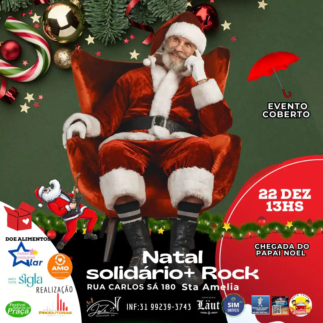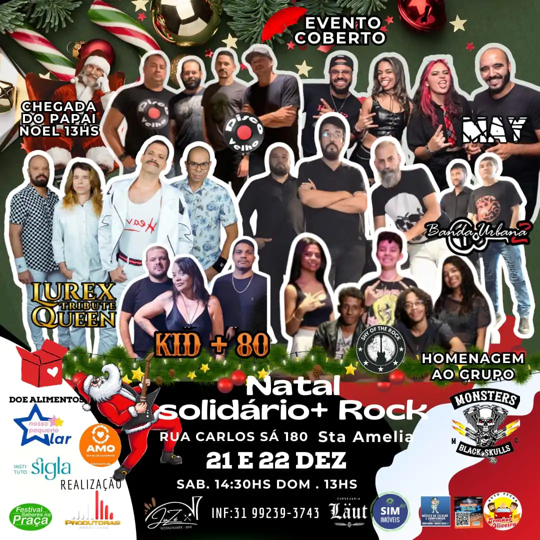 O Natal Solidário + Rock traz a campanha Natal Sem Fome, convida a todos a fazerem a diferença neste fim de ano. A entrada é gratuita, e pedimos que os participantes contribuam com alimentos não perecíveis para ajudar famílias carentes da região. O evento terá uma variedade de atividades que incluem apresentações culturais, gastronomia local, e, principalmente, a arrecadação de alimentos não perecíveis.