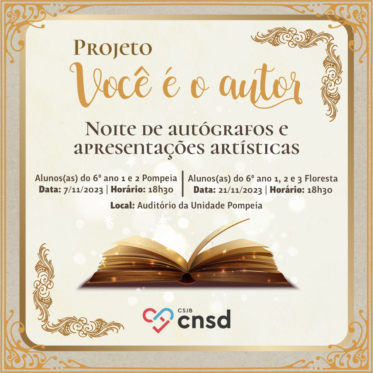 Serviço: Crianças autoras de livros fazem sua primeira noite de autógrafos em Belo Horizonte Data: 21 de novembro 2023 Endereço: Rua Antônio Justino, 280 – Pompéia Belo Horizonte/MG Informações: https://cnsdbh.com.br/2023/11/