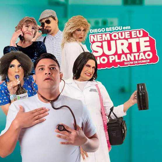 O maior show de humor da área da saúde está de cara nova! “Nem que eu surte no plantão”, o novo espetáculo do enfermeiro e humorista Diego Besou, promete transformar os dilemas da vida moderna, especialmente os vividos nos bastidores dos plantões em uma comédia hilária e cheia de identificação.