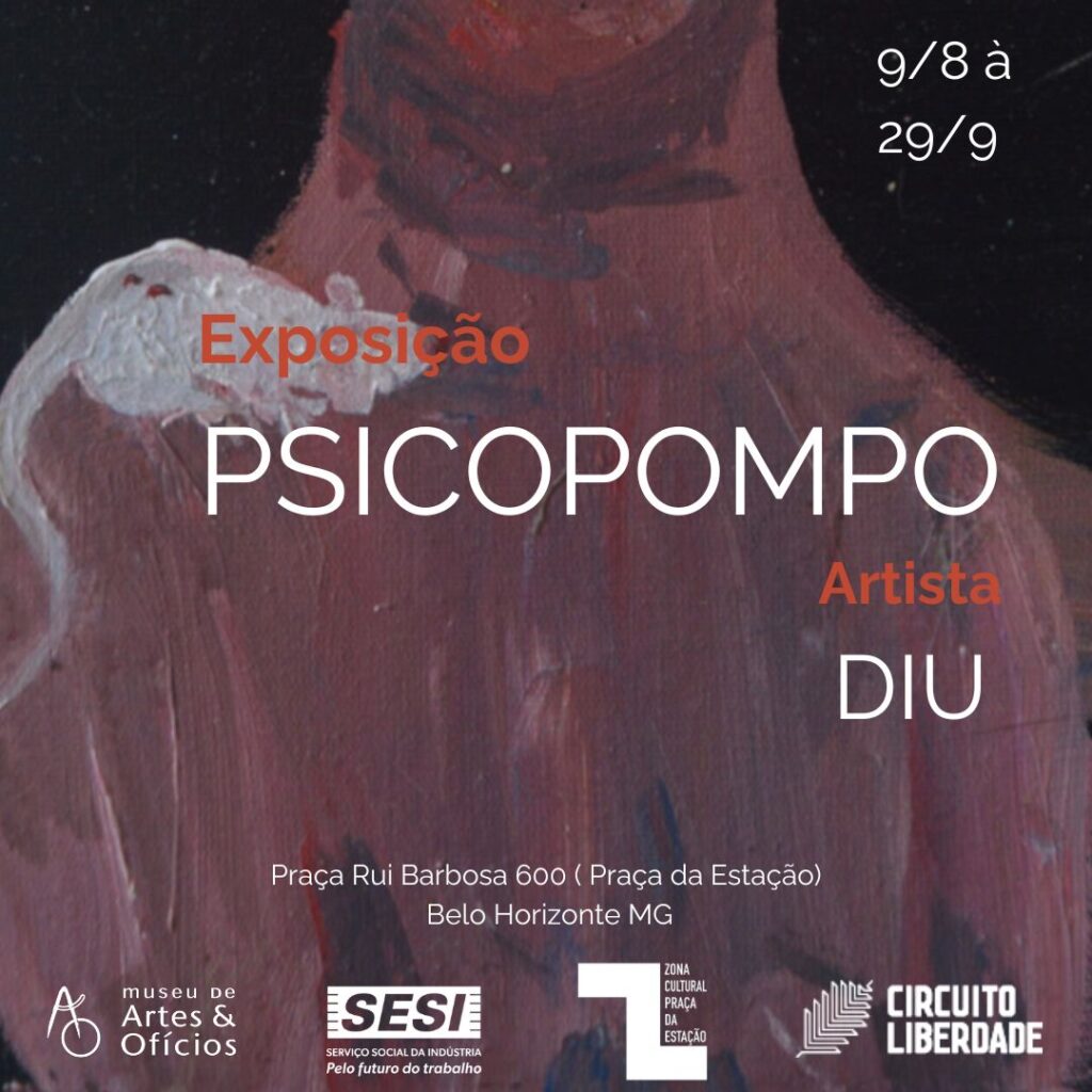 Psicopompo é o título da exposição onde a artista partilha sua poética visceral com um conjunto de pinturas que criam ambiência transcendental pelo espaço.