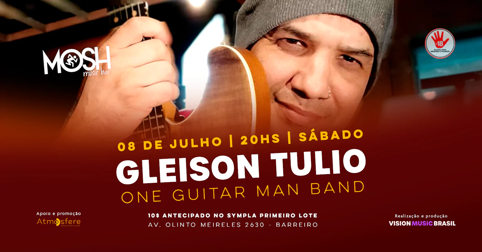 Gleison Túlio, também conhecido como One Man Band, é um artista polivalente de Pedro Leopoldo, Minas Gerais. Ele se apresentará no Mosh Music Bar, em Belo Horizonte, no sábado, 8 de julho. O evento contará com a adaptação do som de vários instrumentos e texturas em seu violão eletroacústico percussivo e na guitarra elétrica.