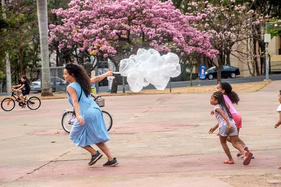 Outra convidada, a bailarina Naline Ferraz, também já havia vivido outros processos performativos, mas conta que o diferencial deste foi o tempo. “O tempo de estudo, de debruçar sobre o programa performativo, de dar tempo para que o sopro do outro, através dos  encontros com as pessoas e com os espaços de Belo Horizonte de fato acontecessem”. No roteiro proposto, à medida que Naline enche as bolinhas de plástico, muitas são levadas pelo vento e as pessoas, em volta, correm para ajudar. “Nessa hora, alguns perguntam o que estou fazendo: se é arte, apresentação. Teve gente que perguntou se era terapia (risos)”, diz. Segundo Naline, o grande desafio está em manter o roteiro de ações. “Marcelo nos orienta a não entregar o jogo (que é uma performance), porque se não a conversa acaba. Temos que nos manter fiéis ao programa que trouxemos, e, ao mesmo tempo, deixar a troca acontecer. A beleza está exatamente no encontro que se dá, por exemplo, com aquele que se dispôs a me ajudar, ou com aquele outro que preferiu observar de longe”, explica.