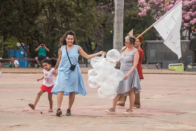 Para o diretor, os desafios estão na própria natureza do trabalho. “Cada vez que a gente vai para o espaço público, as ações já estão  acontecendo, o que nos coloca diante do inesperado. Como quando fomos ensaiar no Parque Municipal, em uma segunda, e estava fechado. Aí a gente entendeu que isso seguiria acontecendo. Cada experiência é única, tem um desenho, uma estrutura, mas também é absolutamente permeável ao momento. Porque é um trabalho que se insere na vida (e a vida é imprevisível). Para quem é surpreendido nas praças e parques, percebemos que o trabalho tem entrada fácil. As pessoas se aproximam, vem contar casos. O encontro acontece, é bonito de ver. O que vai acontecer, a gente não sabe. Mas estaremos fazendo o trabalho e buscando o encontro. Não é uma performance para ser assistida  passivamente. Tem mistério e risco nisso: às vezes, o encontro se dá, às vezes, não”, diz.