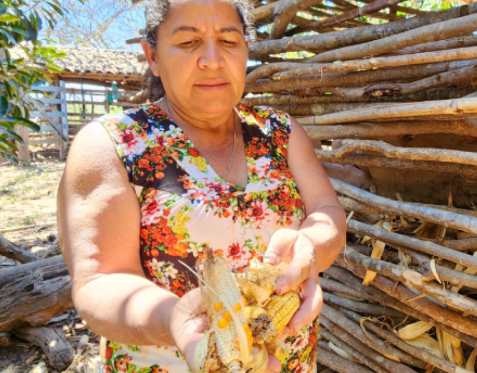 Ela conta que o pouco que planta para subsistência é sempre perdido pela falta de chuva. “A gente trabalha mais do que produz. Este ano mesmo, colhemos só um pouco de milho. O resto, perdemos tudo”, lamenta.