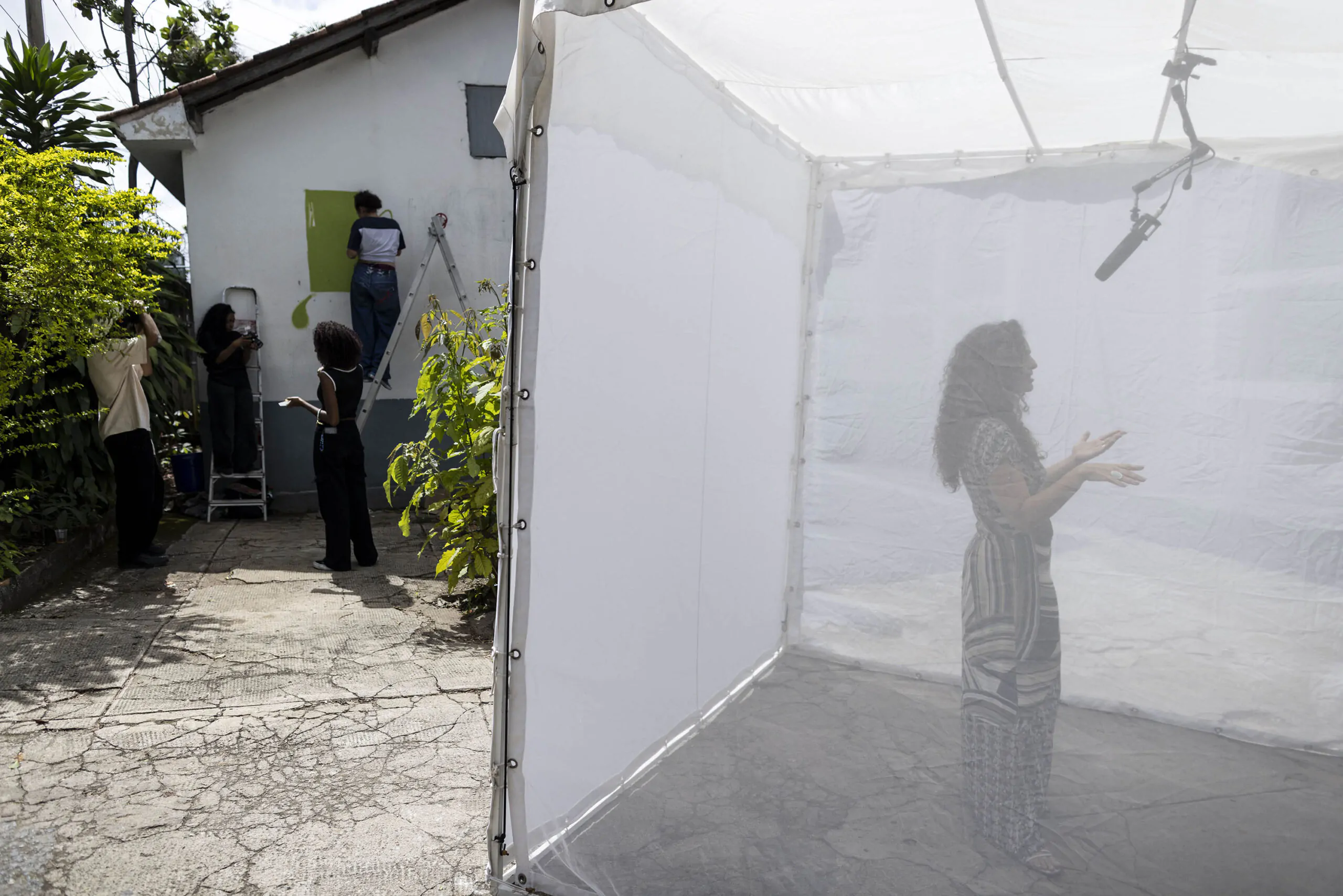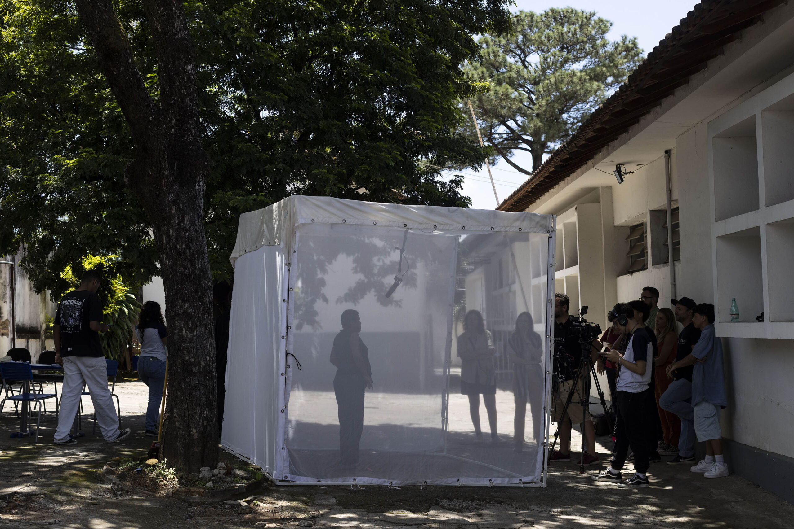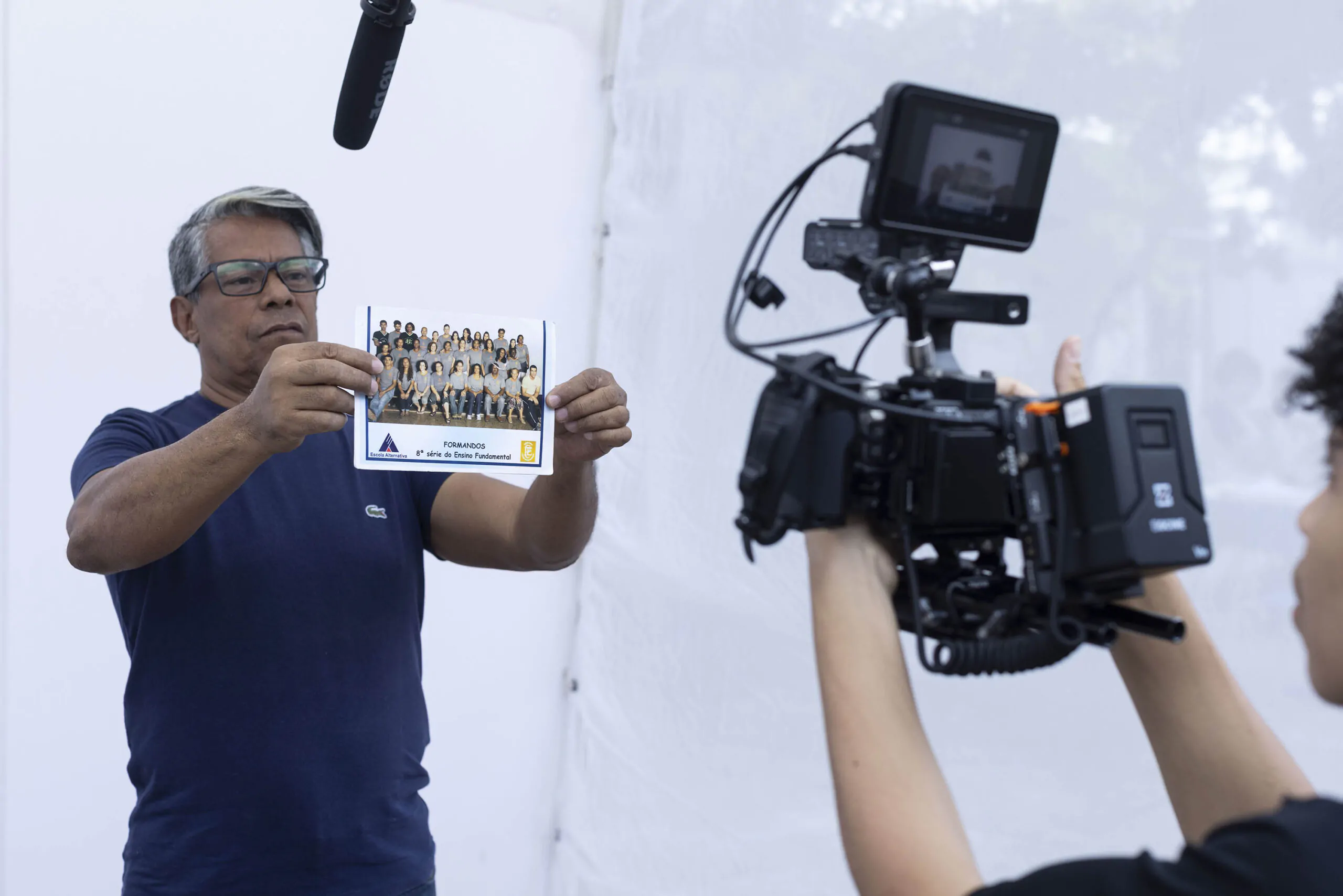 Depois da oficina, a equipe de fotógrafos, videomakers e jornalistas do MORADORES | EDUCAÇÃO armou durante três dias dentro da escola a famosa tenda branca, já característica do projeto, para poder receber a visita de diversos personagens que fazem ou fizeram parte da história da instituição. Dentro da tenda, uma câmera e um microfone registraram as lembranças e memórias de toda a comunidade escolar, que foi chamada a se reconhecer como patrimônio cultural da escola e a contar sua história de afetividade com esse território. Mais de 150 pessoas participaram e o material, com horas de gravação e centenas de imagens, transformou-se em um filme documentário e uma exposição.
