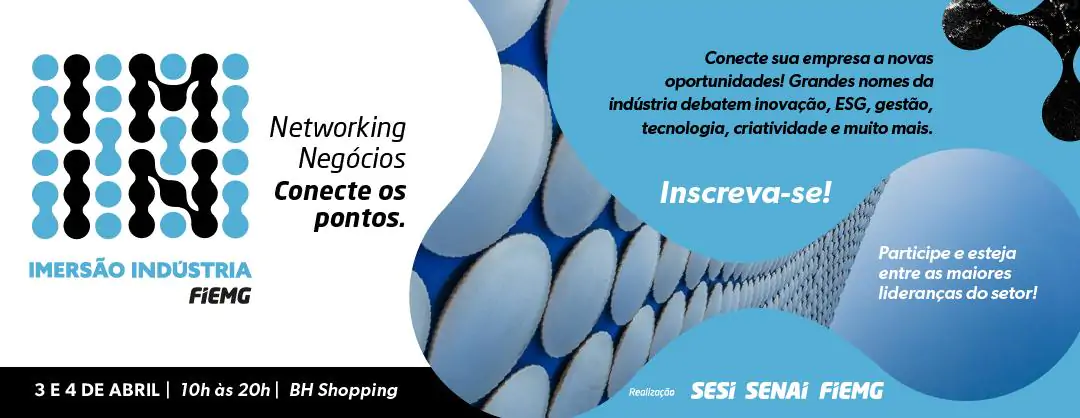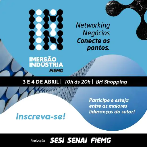 O Imersão Indústria é o maior evento do setor produtivo mineiro e, em 2025, será realizado nos dias 3 e 4 de abril, com foco em networking e geração de negócios. A programação contará com painéis, palestras, rodadas de negócios e conexões com startups e grandes empresas da cadeia industrial.