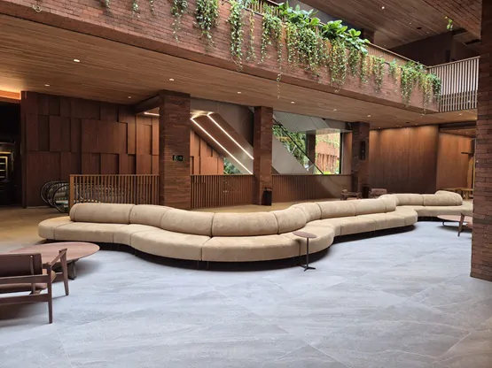 O projeto de interiores, assinado pelo arquiteto David Guerra, também foi pensado para proporcionar um ambiente acolhedor e convidativo. O Botânico Shopping tem materiais naturais, como madeira, pedra e tijolo, e mobiliário assinado por designers brasileiros com elementos de madeira, fibra que caminham entre o tecnológico e natural.