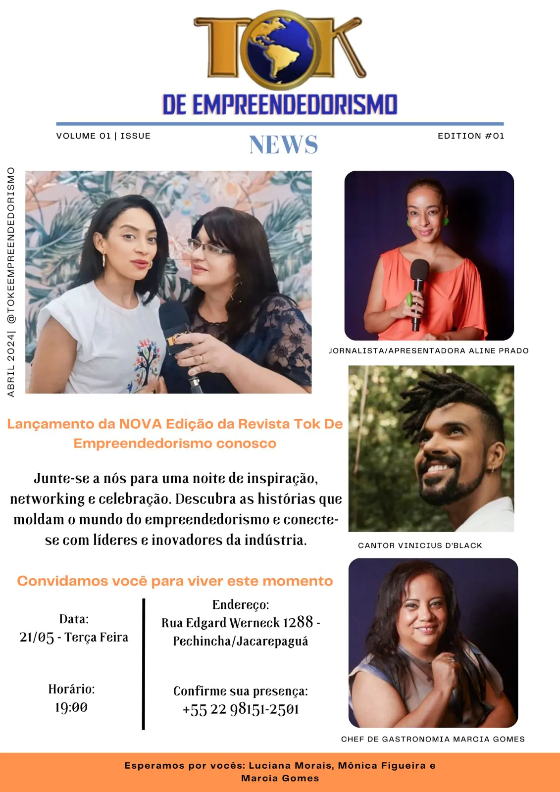 No dia 21 de maio, uma das publicações mais aguardadas no universo do empreendedorismo brasileiro, tem o prazer de anunciar o lançamento de sua mais nova edição, em um evento exclusivo para imprensa, personalidades, colunistas e anunciantes, em um espaço na Pechincha/Jacarepaguá, Rio de Janeiro. Com a presença das empresárias Mônica Figueira e Luciana Morais, sendo os anfitriões da noite, em um evento exclusivo.