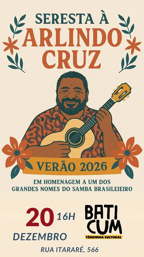 Ingressos: https://www.sympla.com.br/evento/baticum-de-noel-seresta-a-arlindo-cruz-2-edicao-ultimo-samba-do-ano/3242211