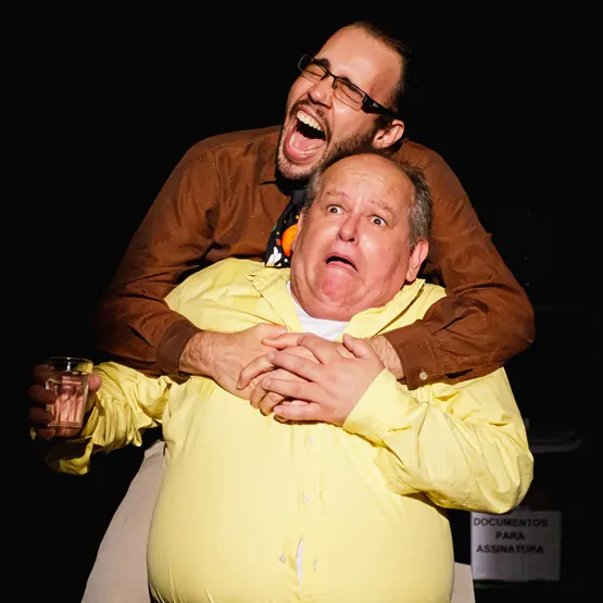 Parceiros já fora dos palcos, os amigos Fernando Veríssimo e Lucas Barbosa representam o encontro de duas gerações do teatro belo-horizontino.