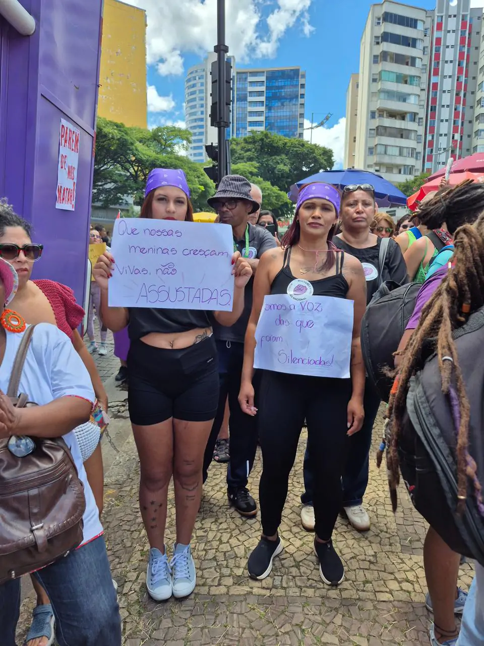 A manifestação também foi marcada pela presença de crianças, reforçando o caráter intergeracional da luta contra a violência de gênero. Uma das falas que mais emocionou o público foi a da ativista mirim Maria Cecília Santiago da Conceição, de 10 anos, integrante do Movimento por Mais Mulheres em Todos os Espaços (MOMAM).